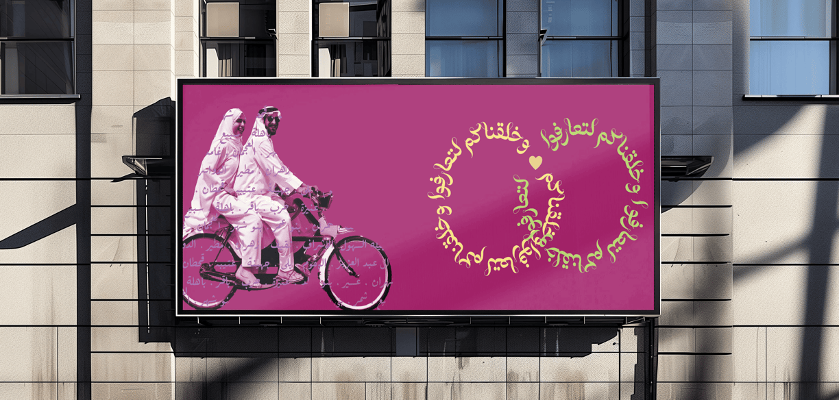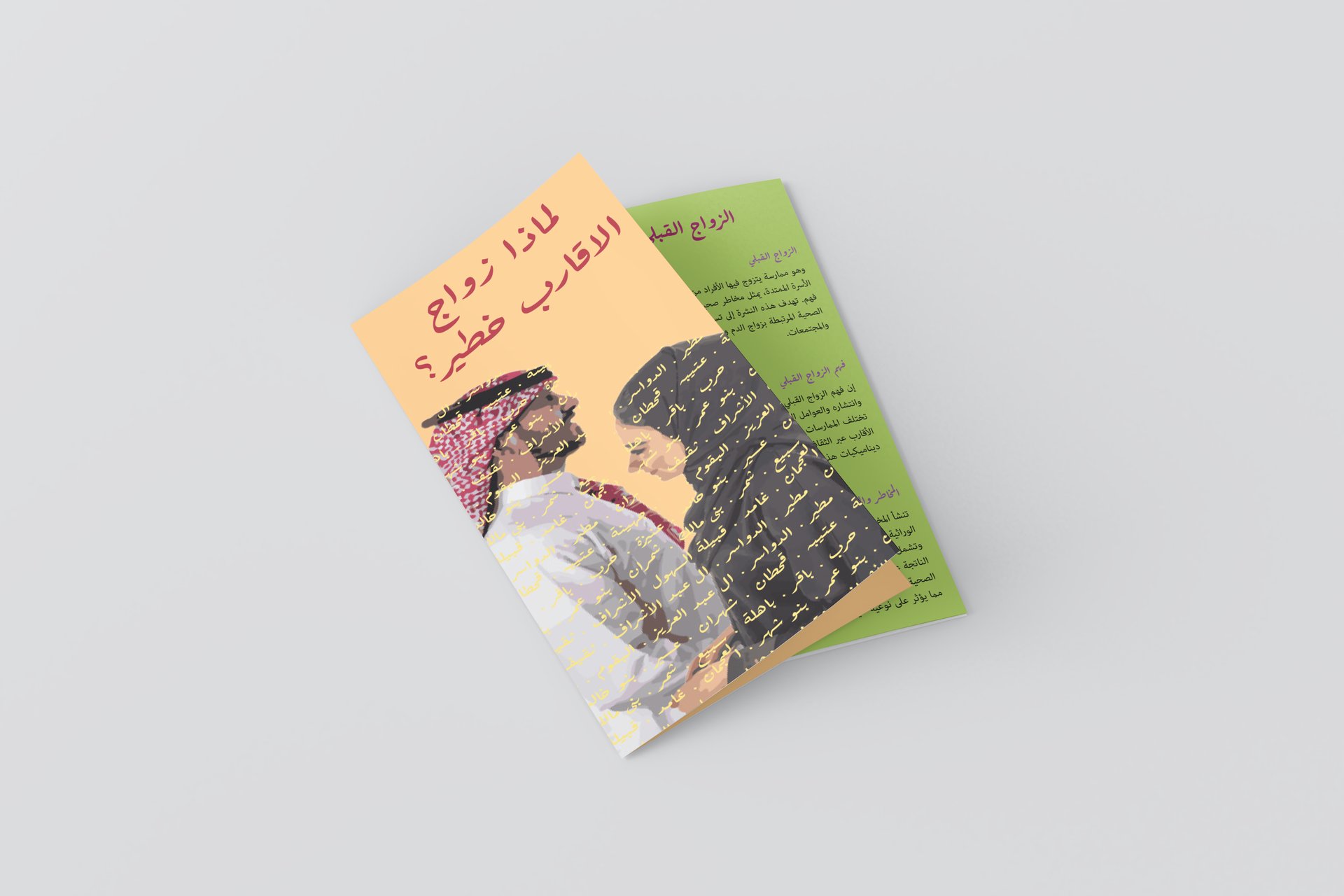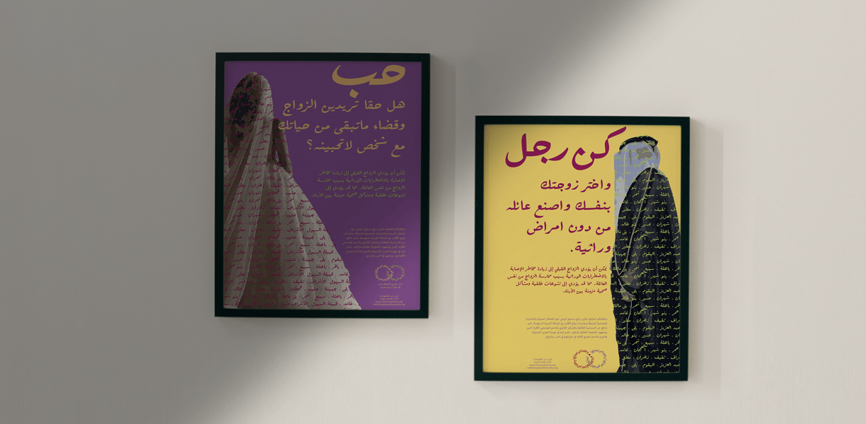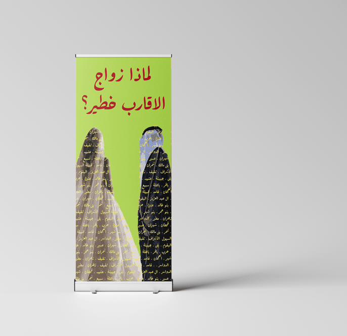 For this semester-long project, I focused on raising awareness about cousin marriage in Saudi Arabia, a significant social issue in my environment. I designed a comprehensive identity for the campaign, titled “And We Created You to Get to Know Each Other,” inspired by a verse from the Quran. This campaign included publications, posters, a website, an awareness video, and a booth. I used photographs of Saudi individuals and creatively incorporated the names of different tribes over their images, giving a personal touch to the campaign. The use of bright, cheerful colors was intentional—aimed at creating a more approachable and engaging way to communicate a serious topic.