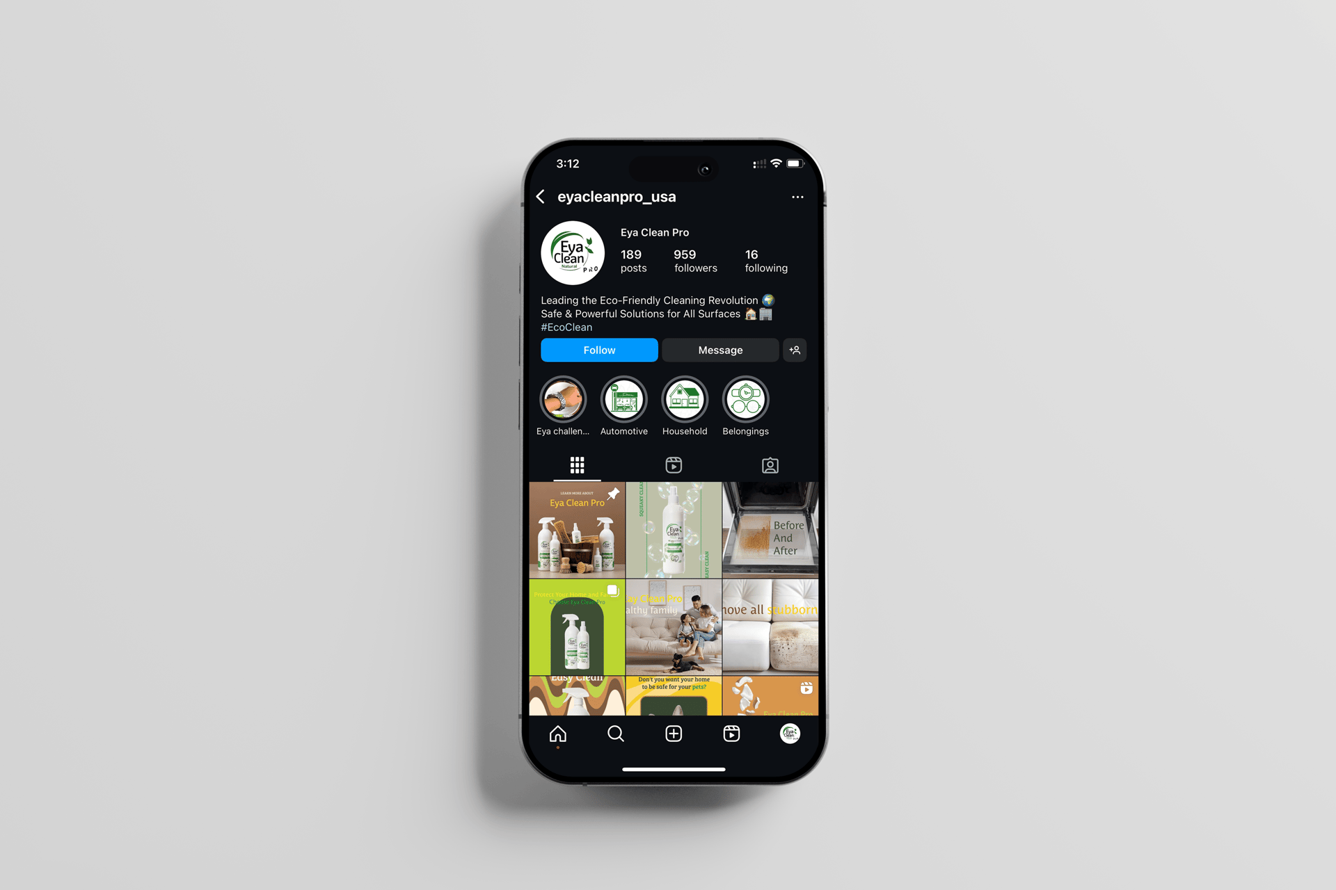 In this project, I designed a cohesive set of around 30 Instagram posts for Eya Clean Pro. I established the brand’s visual identity by selecting a consistent color palette and font combination that reflected cleanliness, professionalism, and trust. Each post was created to align with the brand’s messaging while maintaining a visually integrated feed, ensuring the content was both engaging and on-brand.