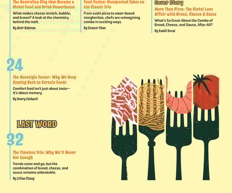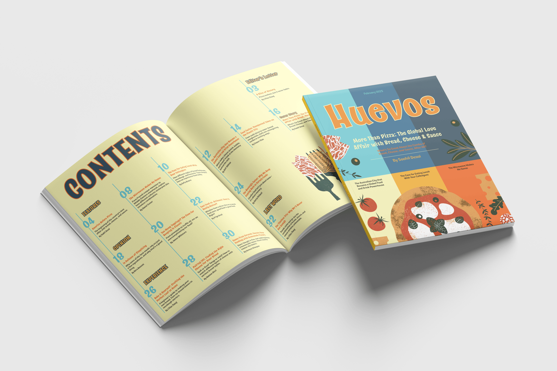 This cooking magazine was designed as a playful escape from everyday life. I wanted readers—especially cooking enthusiasts—to feel a sense of joy and lightness as they flipped through the pages. Personally, I find cooking to be a calming ritual, a moment to breathe and disconnect. To reflect that, I used lively illustrations, cheerful colors, and a whimsical typeface that breaks away from realism. The entire visual direction was meant to feel imaginative and carefree, creating a space where food becomes not just nourishment, but a form of joyful distraction.