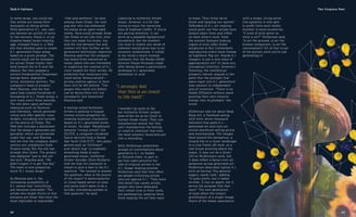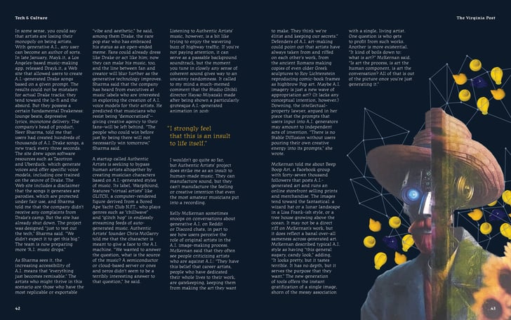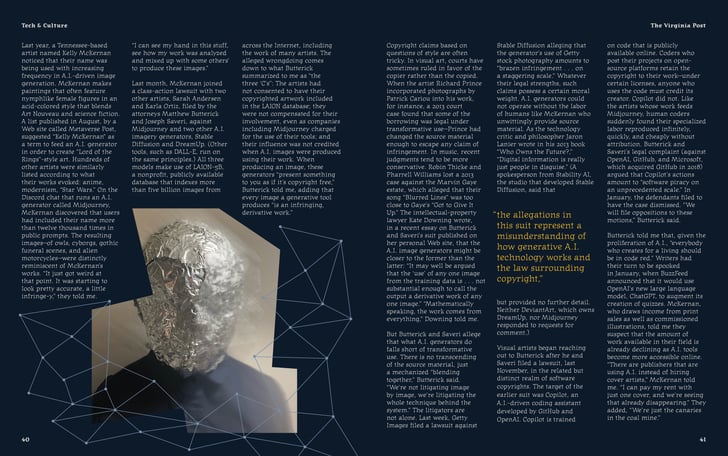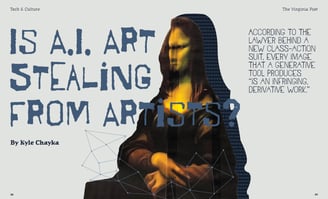 In this editorial design project, I explored the tension between human creativity and artificial intelligence. I chose an article that questioned how AI replicates and appropriates human-made art. Inspired by its unsettling theme, I used a distorted zigzag typeface and incorporated AI-generated versions of iconic paintings like the Mona Lisa and Van Gogh’s self-portrait. During printing, I manually disrupted the image feed to create eerie visual glitches. The final touch was a blurred photograph of a figure wrapped in aluminum, resembling a humanoid machine. The result is a magazine spread that feels both futuristic and unnerving—mirroring the article’s core message.