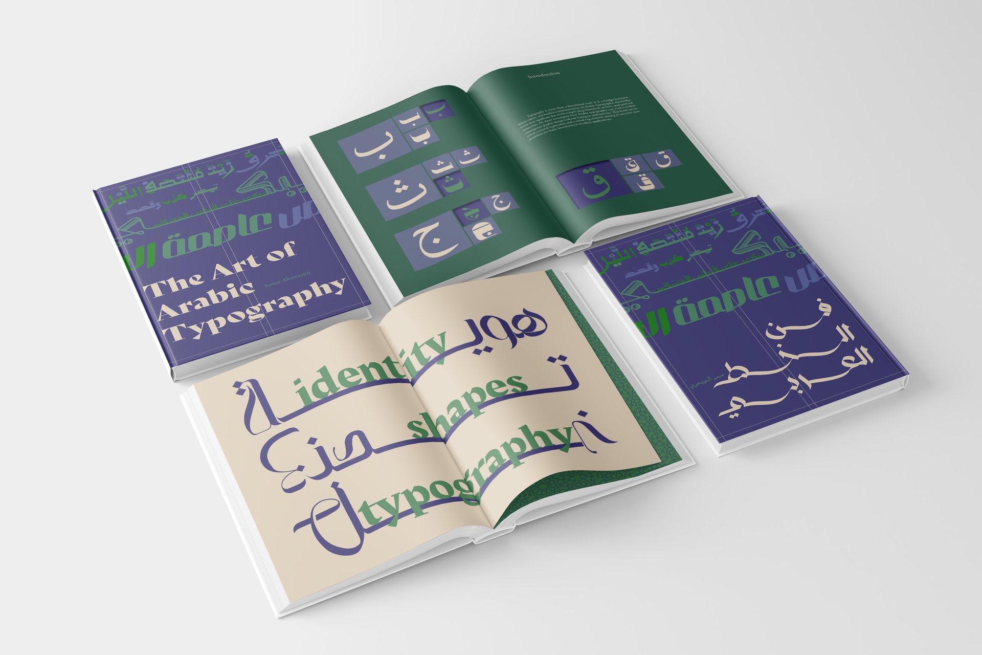 My thesis book captures the full arc of research, experimentation, and creation behind The Art of Arabic Typography. Designed with a balance between academic structure and artistic exploration, the book features a bilingual layout: the left pages present the English version, while the right pages mirror the same content in Arabic. This dual-language format reflects the cultural dialogue at the heart of the project. Thoughtful layouts, clean grids, and strategic use of Arabic typography guide the reader through historical research, contemporary experimentation, and personal reflections. The book serves both as a scholarly record and a creative object, inviting readers to engage deeply with the visual and cultural significance of Arabic typography in today’s design landscape.